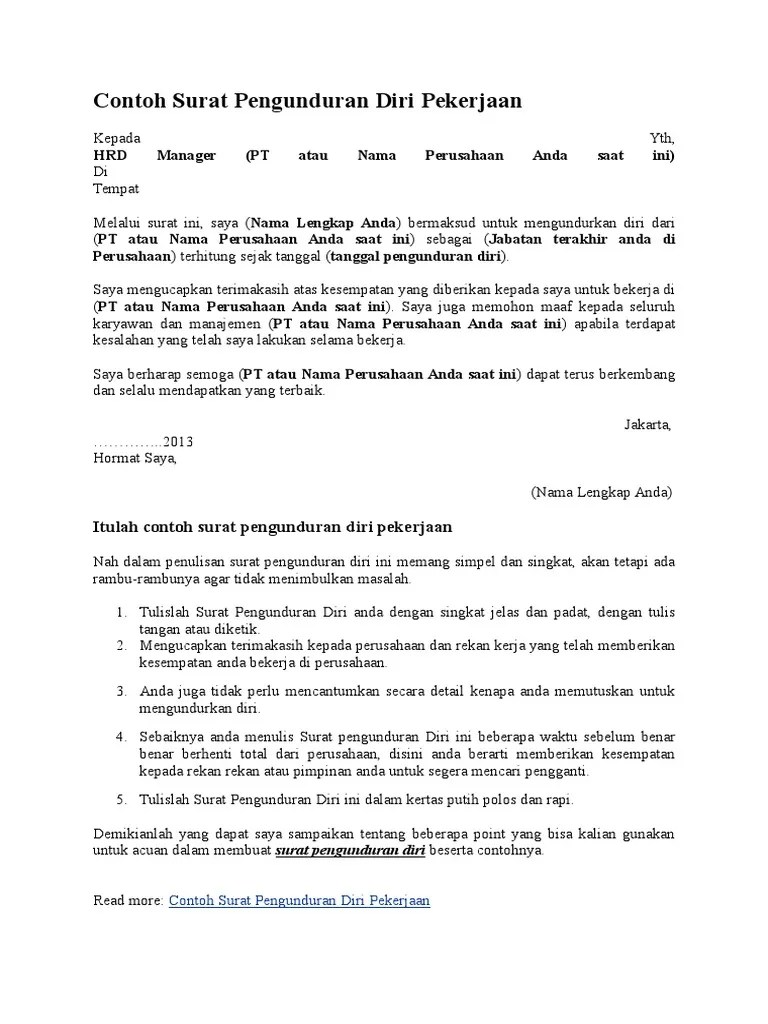Jika surat pengunduran diri tulis tangan maka gunakan kertas folio. Dengan adanya surat ini, saya bertujuan untuk mengajukan permohonan pengunduran . Surat pengunduran diri kerja adalah surat yang dibuat untuk tujuan mengundurkan diri dari pekerjaan. Pahami struktur lamaran kerja yang ditulis tangan agar . Tulislah surat pengunduran diri anda dengan singkat jelas dan padat, dengan tulis tangan atau diketik.